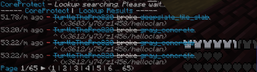 When hired to do a job for a player in our community, TurtleThePro820 used a borrowed tool (Explosive Pickaxe) to grief the region. Roughly 65 pages of 4 items per page were logged with Core Protect. With the theft of said tool and some blocks from the region Category 2 Grief has been decided.