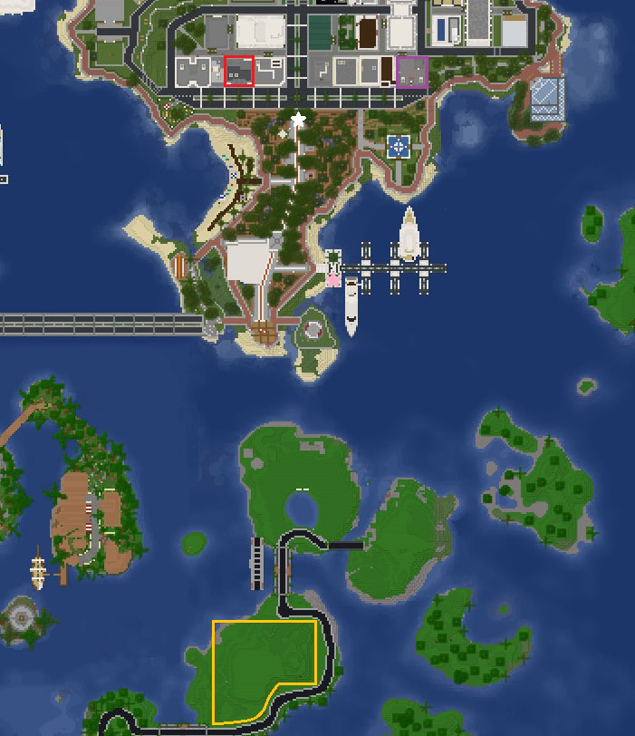 Dynomap (White Star = /warp cb, Pink Star = NPC Teleporter to Crystal Archipelago):